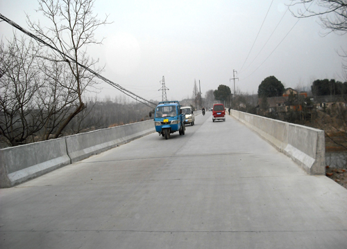 由于該工程地理位置特殊,施工場地狹窄,給老橋拆除帶來很大困難,同時(shí)由于場地限制,大梁預(yù)制場地不得已選擇在距該橋有5公里之遠(yuǎn)處,且長22.2米的T梁(每片重約50噸)運(yùn)輸及存放也成為一個施工難點(diǎn)。面對施工任務(wù)重、工期緊、大梁運(yùn)輸及吊裝等不確定的安全因素,為確保工程盡快建成通車,自今年9月19日開始封橋施工以來,我處上下同心協(xié)力,精心組織,分管副處長長駐工地,親自抓工程質(zhì)量和工程進(jìn)度,實(shí)行工程施工倒計(jì)時(shí),將施工計(jì)劃排到每一天,搶進(jìn)度,重質(zhì)量,保安全,提前完成了世行辦下達(dá)的施工任務(wù),向業(yè)主和當(dāng)?shù)鼐用窠涣艘环萃昝赖拇鹁怼?SPAN lang=EN-US>
