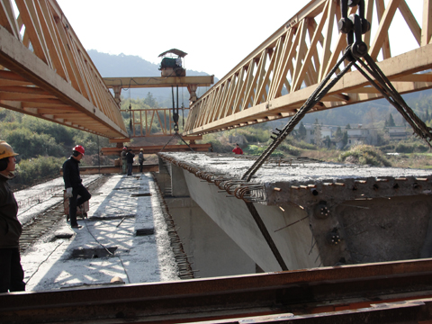 楊潭大橋是S325線石臺(tái)段穿城改線項(xiàng)目的控制性工程。全長(zhǎng)159.05米,全寬13米,上部結(jié)構(gòu)采用5跨×30米預(yù)應(yīng)力混凝土連續(xù)小箱梁,每跨4片,全橋箱梁共計(jì)20片。自10月16日開(kāi)始第一片箱梁架設(shè)后,項(xiàng)目部克服重重困難,精心組織,合理安排,確保了大橋吊裝的順利合龍。
