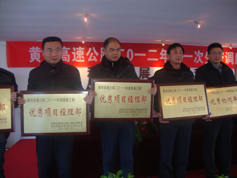2月8日,黃祁高速項(xiàng)目辦在休寧召開了2012年度第一次生產(chǎn)調(diào)度會(huì),會(huì)議總結(jié)了2011年度工作情況,對(duì)2012年度工作進(jìn)行了部署安排,并對(duì)在2011年度工作中獲得先進(jìn)的單位及個(gè)人進(jìn)行了表彰,我處項(xiàng)目部獲得“優(yōu)秀項(xiàng)目經(jīng)理部”榮譽(yù)稱號(hào),方家彬同志獲得“優(yōu)秀安全員”光榮稱號(hào)。