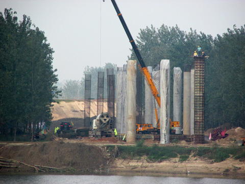 目前S212皖河大橋項(xiàng)目圍繞著墩柱、蓋梁及主墩墩身施工為重點(diǎn),全力推進(jìn)工程建設(shè),確保主墩懸臂箱梁在規(guī)定的計(jì)劃內(nèi)開(kāi)始施工,已完成立柱20根。